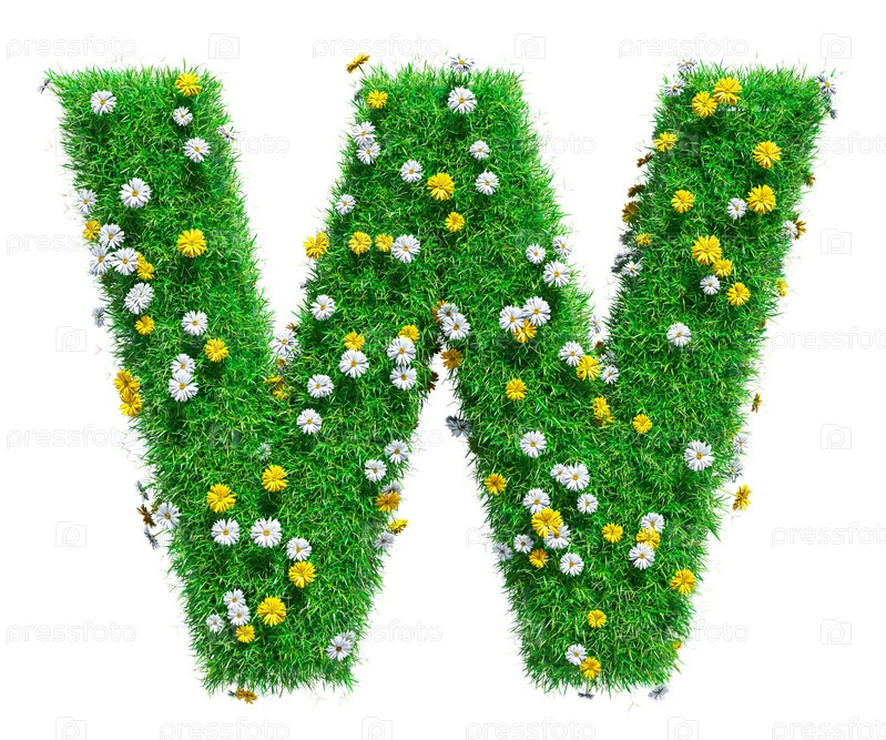 Буква W из зеленой травы и цветов