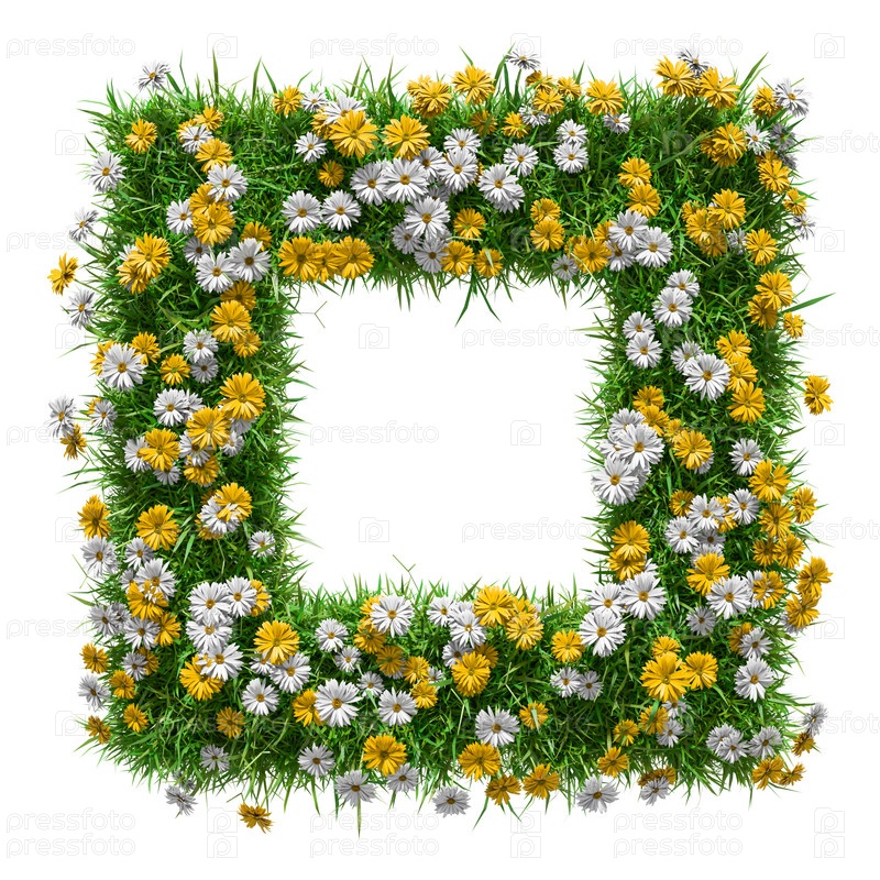 Рамка из цветов и зеленой травы