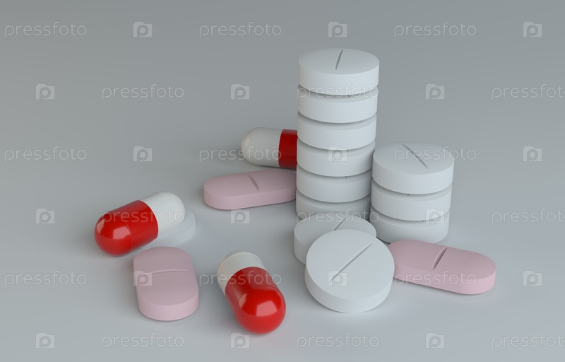 Таблетки, на сером фоне