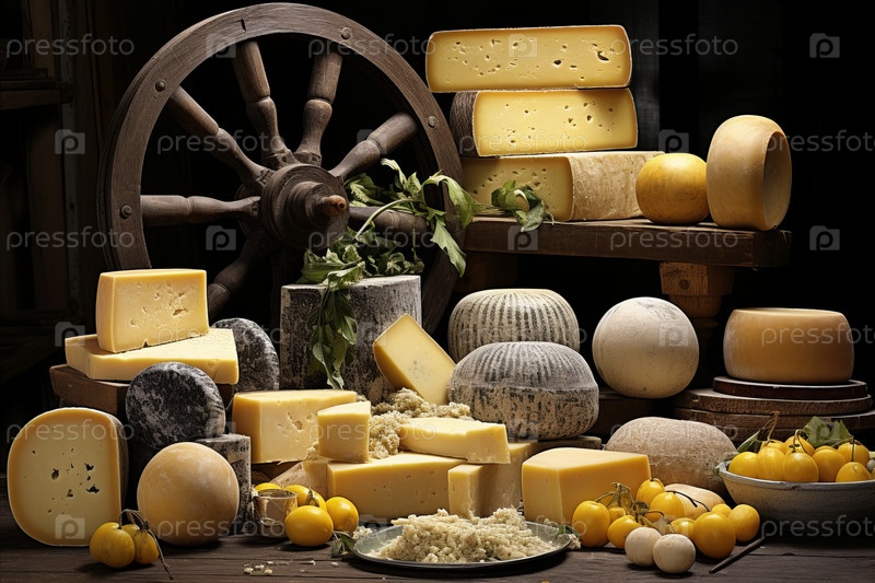 Художественный натюрморт с настоящим сырным кругом Пармиджано Реджано