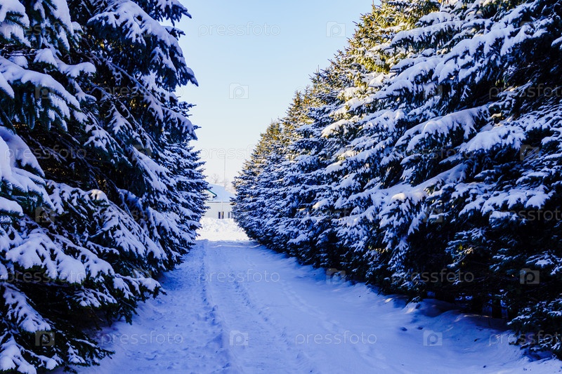 Аллея из елей у здания администрации Краснозоренского района. Орловская область