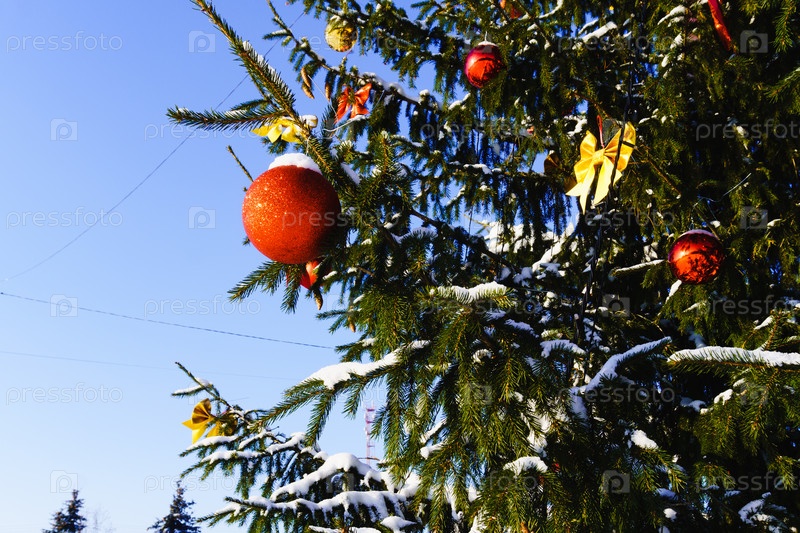 Игрушки на елке. Центральная площадь. Поселок Красная Заря, Орловская область