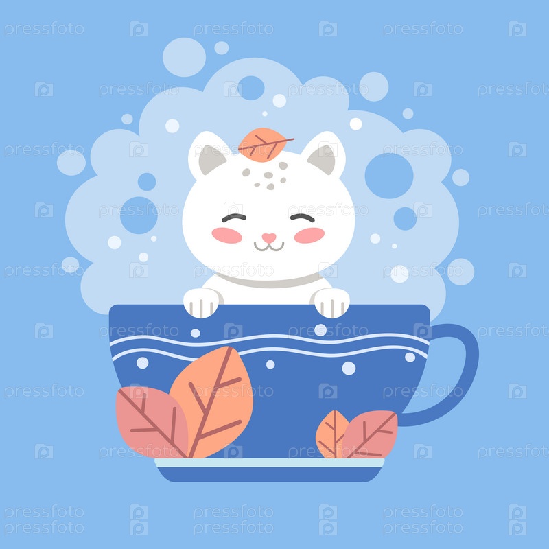 Векторная плоская милая иллюстрация кота в чашке