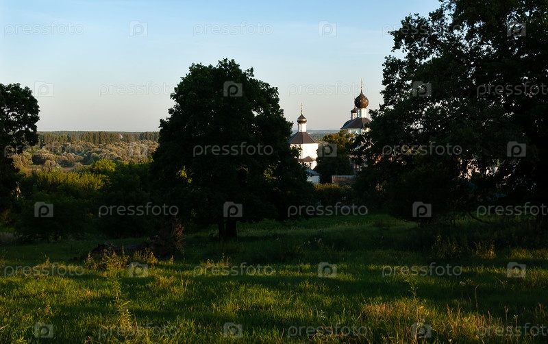 Вековые дубы в Рыльском Никольском монастыре. Вы можете увидеть Троицкую церковь и Крестовоздвиженскую церковь. Курская область, г. Рыльск