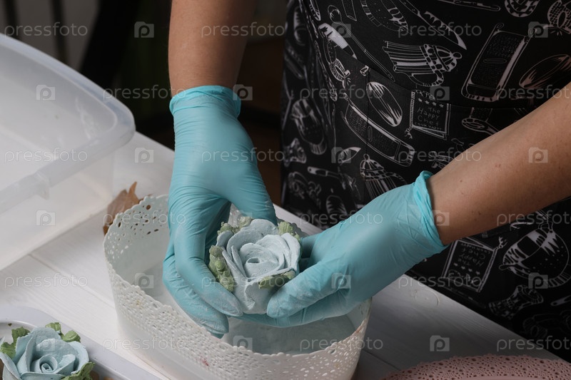 Женщина показывает цветы из зефира. Зеохир домашний. Предприниматель за работой