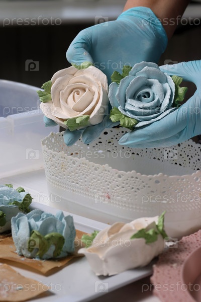 Женщина показывает цветы из зефира. Зеохир домашний. Предприниматель за работой