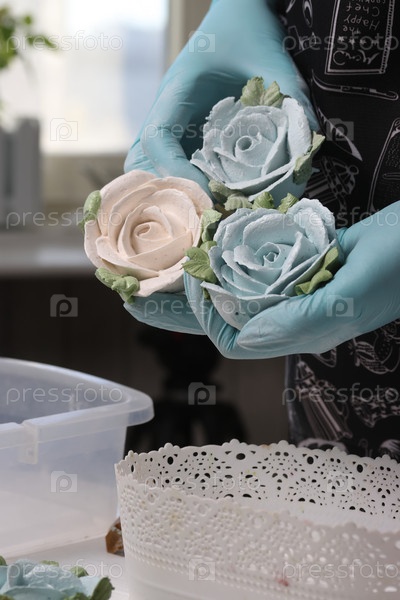Женщина показывает цветы из зефира. Зеохир домашний. Предприниматель за работой