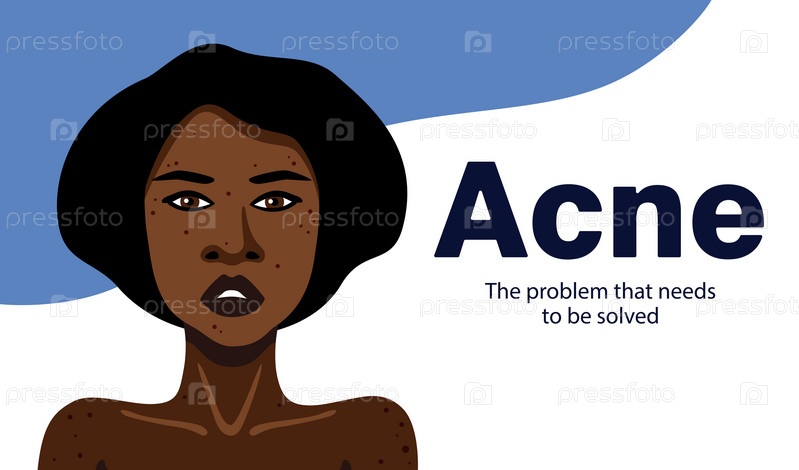 Баннер прыщей с молодой афроамериканкой, минималистичная иллюстрация, обнаженной до плеч