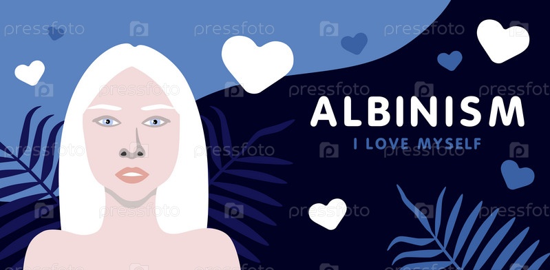 Баннер об альбинизме с молодой женщиной с минималистической иллюстрацией европейской внешности