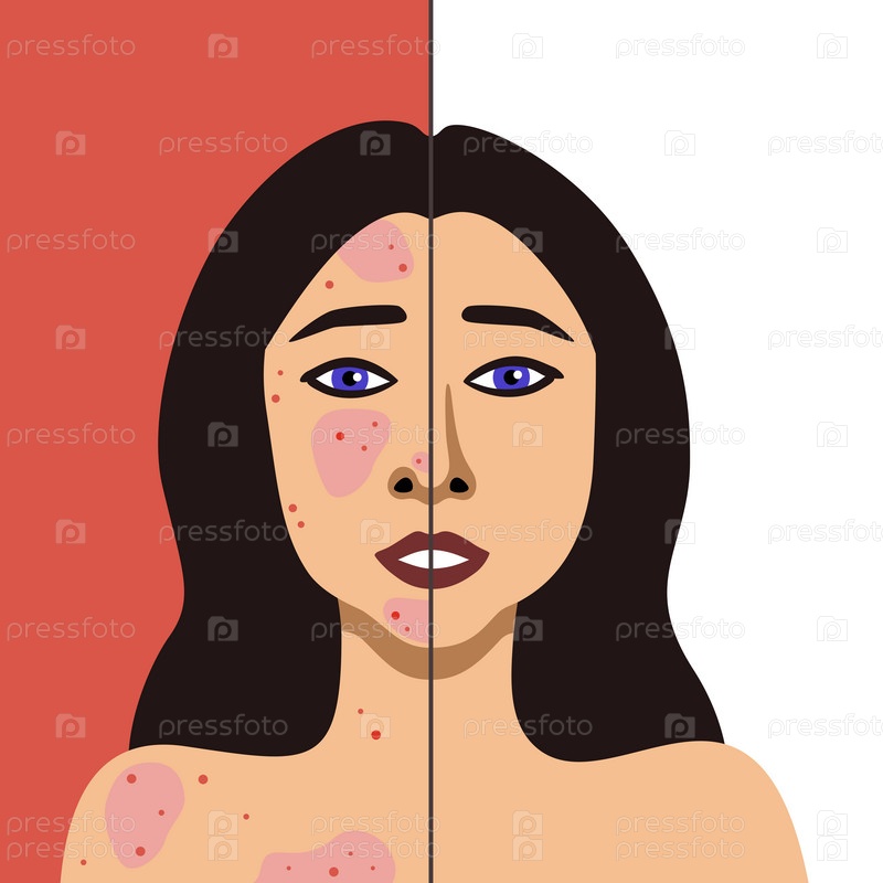 Векторное изображение европейской женщины до и после лечения прыщей, минималистичная иллюстрация