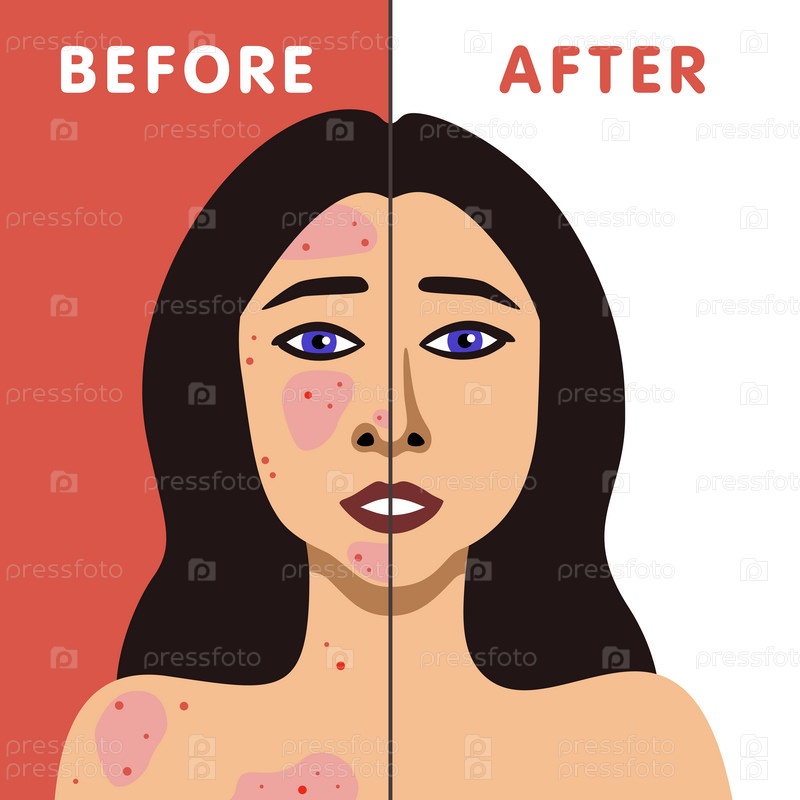 Векторное изображение красивой женщины до и после лечения акне, минималистичная иллюстрация