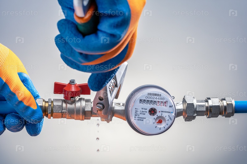 Сантехник ремонтирует утечку водопроводной трубы с помощью разводного ключа