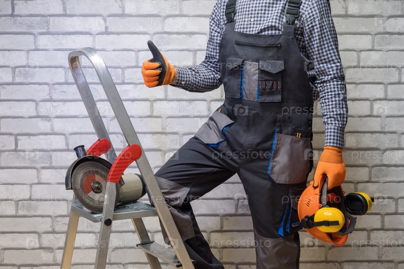 Строитель с большим пальцем вверх