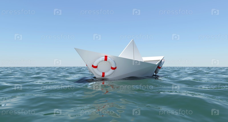 Белый бумажный кораблик, плавающий в морской воде