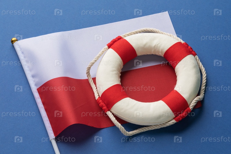 Спасательный круг и флаг Польши на цветном фоне, концепция на тему помощи