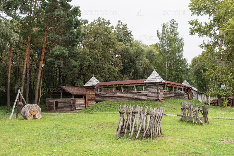 Деревня в старорусском стиле, напоминающая заставу, сделанная из дерева