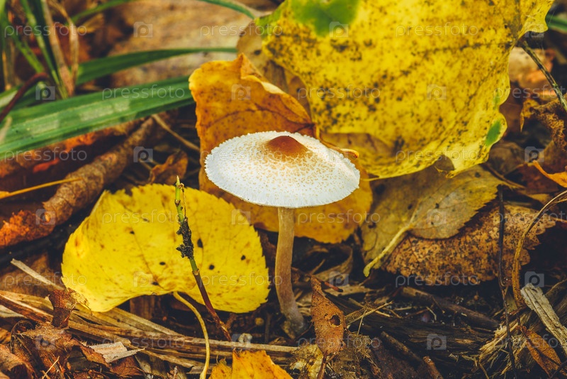 Поганка среди желтых листьев