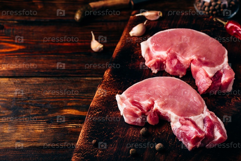 Два стейка из сырой свиной корейки