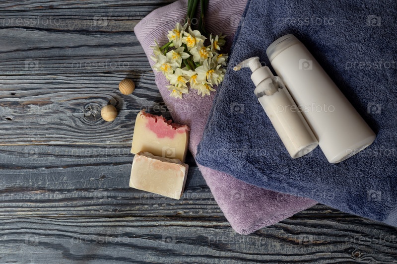 Предметы личной гигиены для спа, полотенца на столе крупным планом