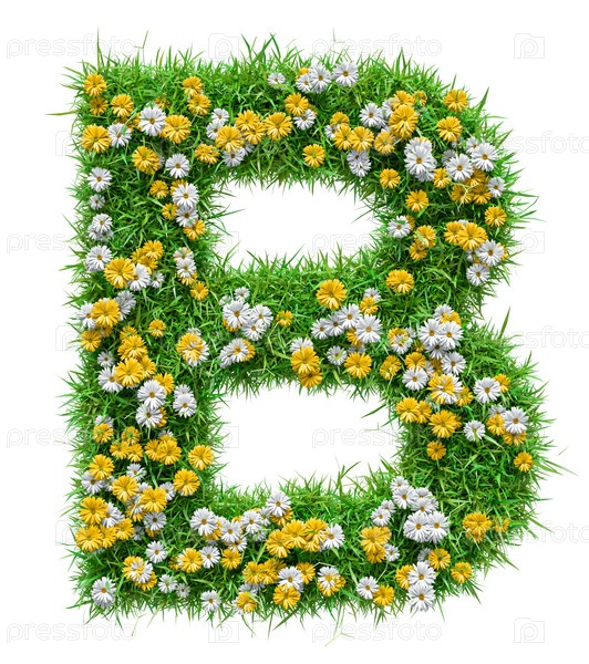 Буква B - зеленая трава и цветы