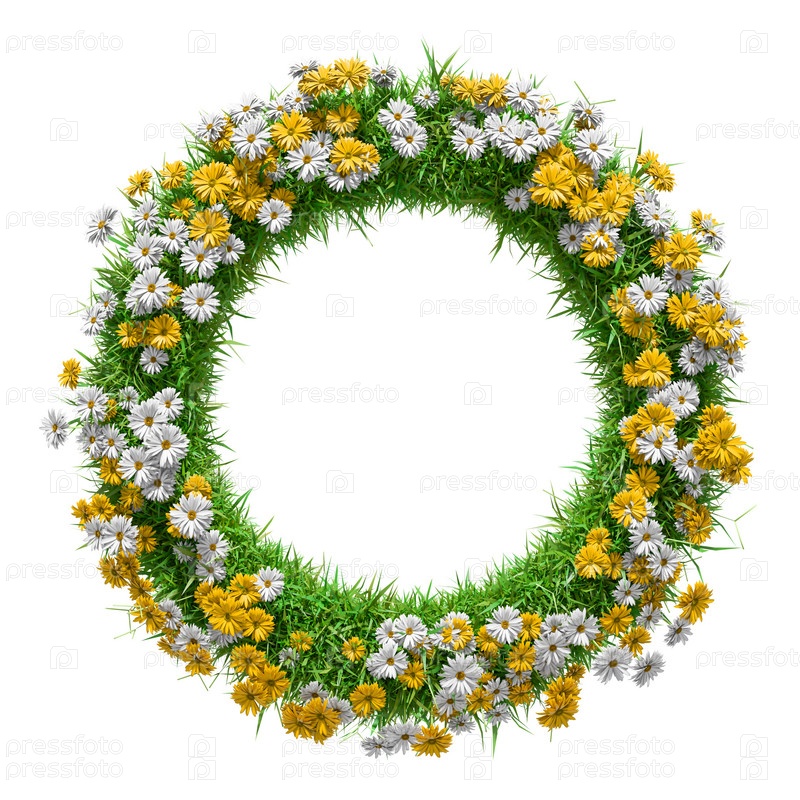 Круглая естественная рамка с травой и цветами