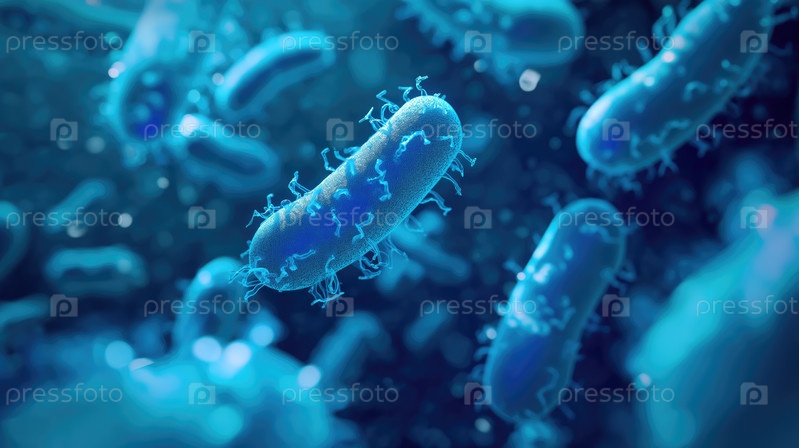 Микроскопические голубые бактерии в микрокосме