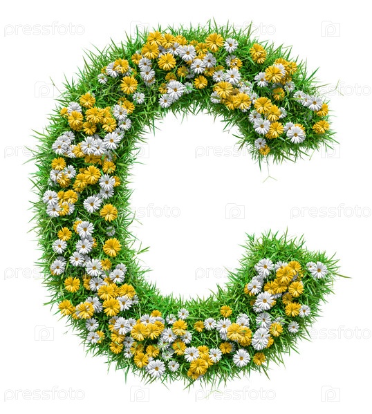Буква C из зеленой травы и цветов