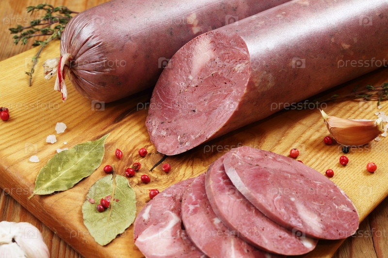 Балыковая колбаса на деревянном фоне