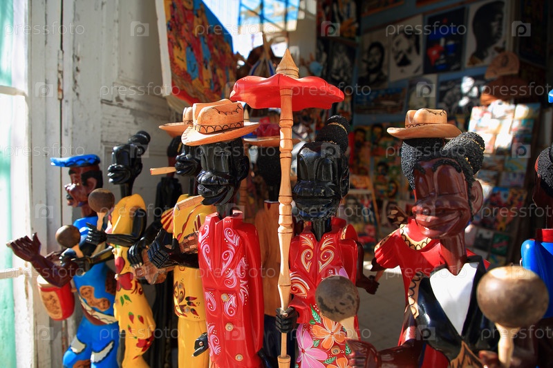 Деревянные куклы африканцев в сувенирной лавке. Тринидад, Куба