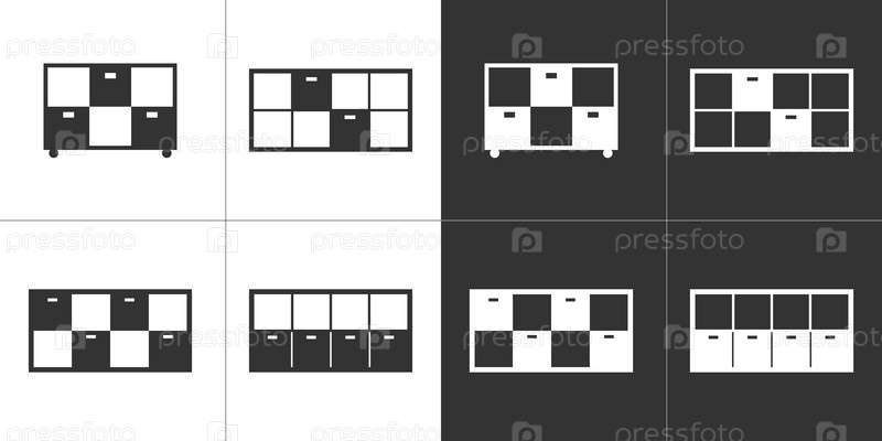 Тумбочки. Набор черно-белых мебельных иконок