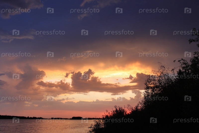 Закат над рекой Иртыш в Омской области