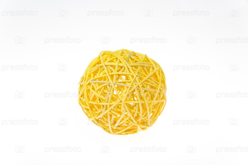 Декоративный плетеный или желтый шар из ротанга, изолированный на белом