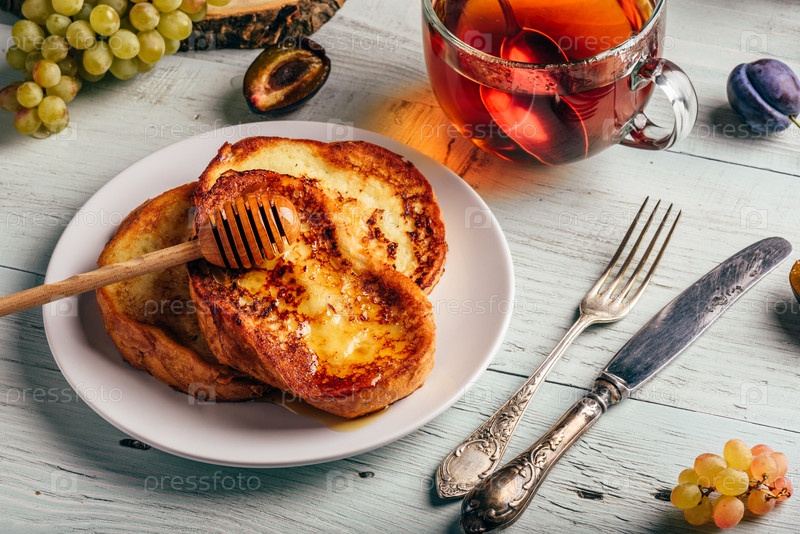 Французские тосты с медом, фруктами и чаем