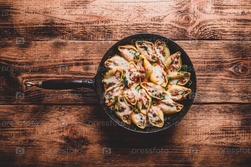 Сковорода с макаронами с начинкой из гигантских ракушек