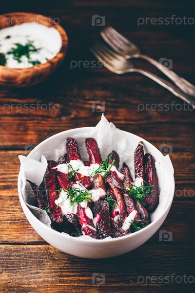 Свекла, запеченная в духовке с йогуртом и укропной заправкой