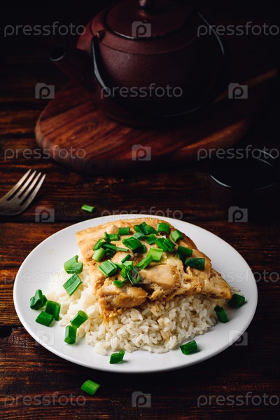 Рис с яичницей, курицей и зеленым луком