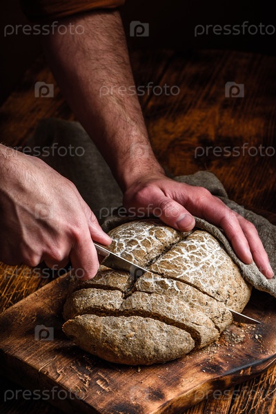 Нарезка домашнего ржаного хлеба