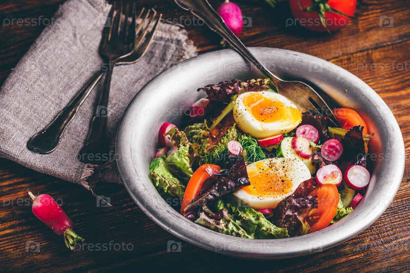 Свежий весенний салат с домашними овощами и вареными яйцами