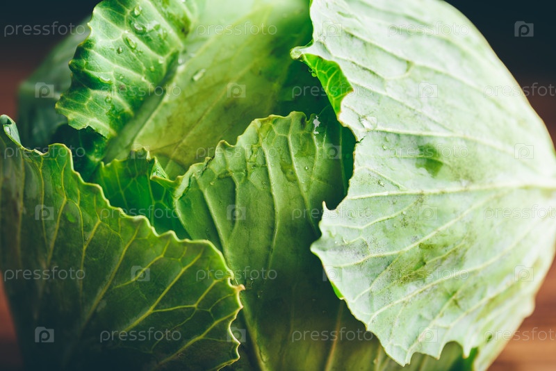 Крупный план белокочанной капусты на деревянной поверхности