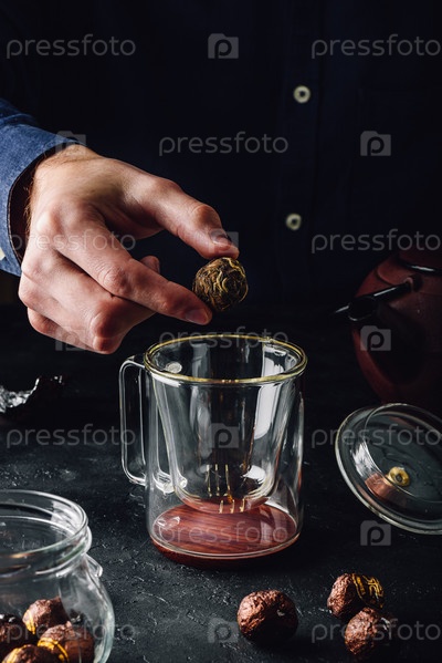 Заваривание чая в стеклянной кружке