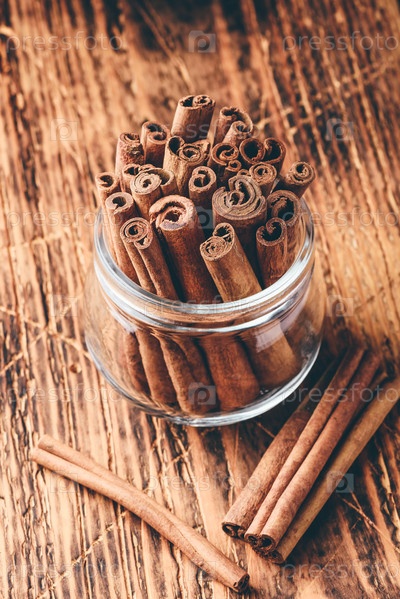 Палочки корицы в стеклянной банке