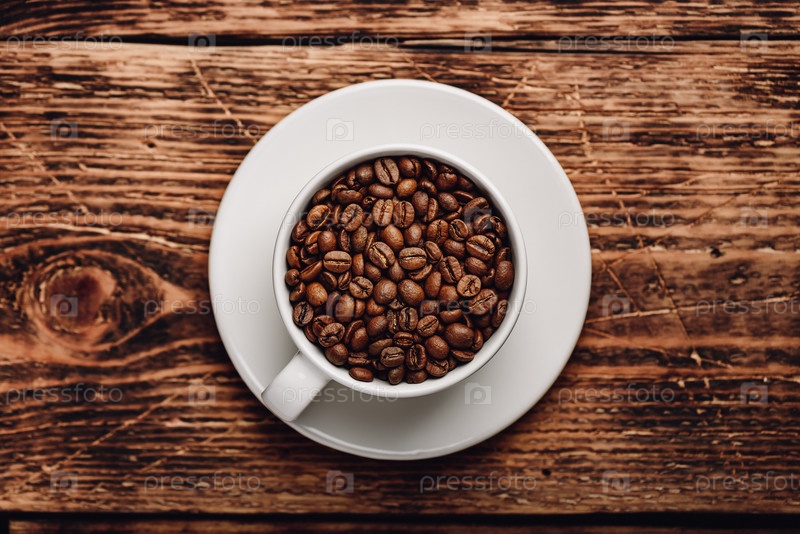 Жареные кофейные зерна в чашке