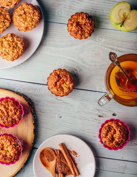 Овсяные кексы с яблоком и чашкой зеленого чая
