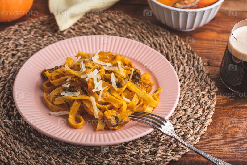 Паста Феттучини с тыквенным соусом и грибами