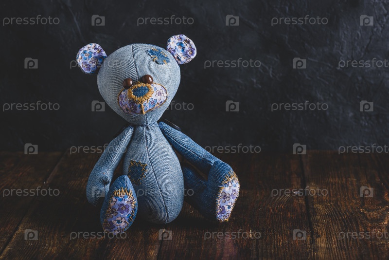 Синяя игрушка-мишка ручной работы