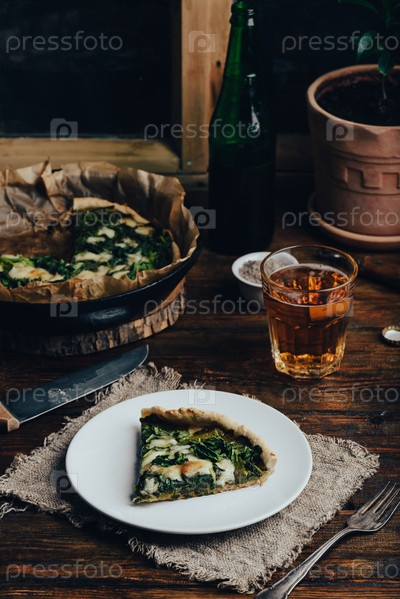 Открытый пирог со шпинатом и сыром пармезан