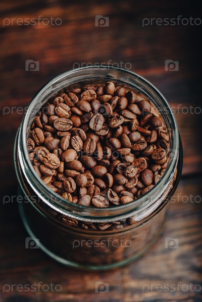 Банка с жареными кофейными зернами