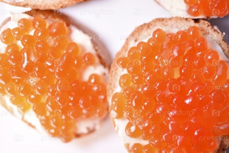 Красная икра лосося на хлебе с маслом. Бутерброд с икрой и маслом на тарелке