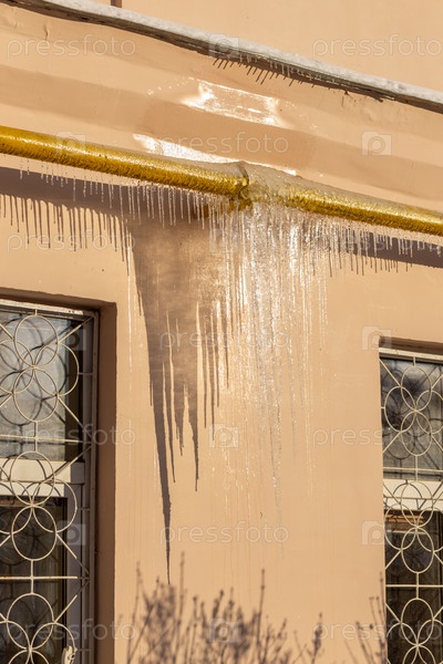 Большие сосульки на крыше таунхауса