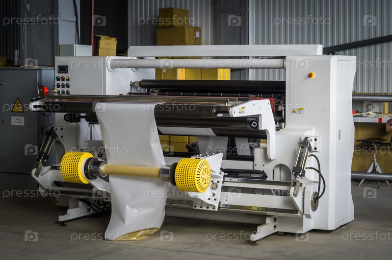 Современный станок для резки больших рулонов белой бумаги для типографий с рулонными высокоскоростными печатными машинами. Селективный фокус